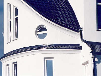 Ausgeführte Arbeiten: Rundgauben, Dachentwässerungssystem.