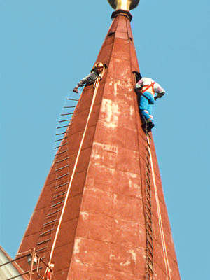 Ausgeführte Arbeiten: Reparatur des Kapellenturmes mit neuem Rostschutzanstrich des