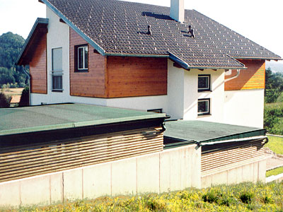 Ausgeführte Arbeiten: Fassadenverkleidung und Dacheindeckung,