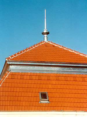 Ausgeführte Arbeiten: Metall-Dachdeckung und Dachentwässerung. Das Walmdach und die